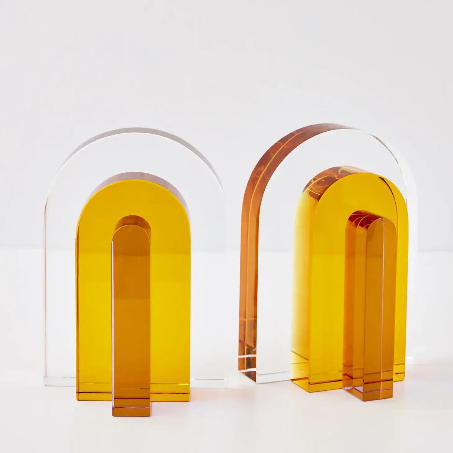 This Phantasmagoric Set Of Rainbow-Shaped Crystal Bookends Will Inject Sheer Joy To Your Home, Office Or Study In Scintillating Shades Of Lilac, Amber And Clear Crystal Arches.