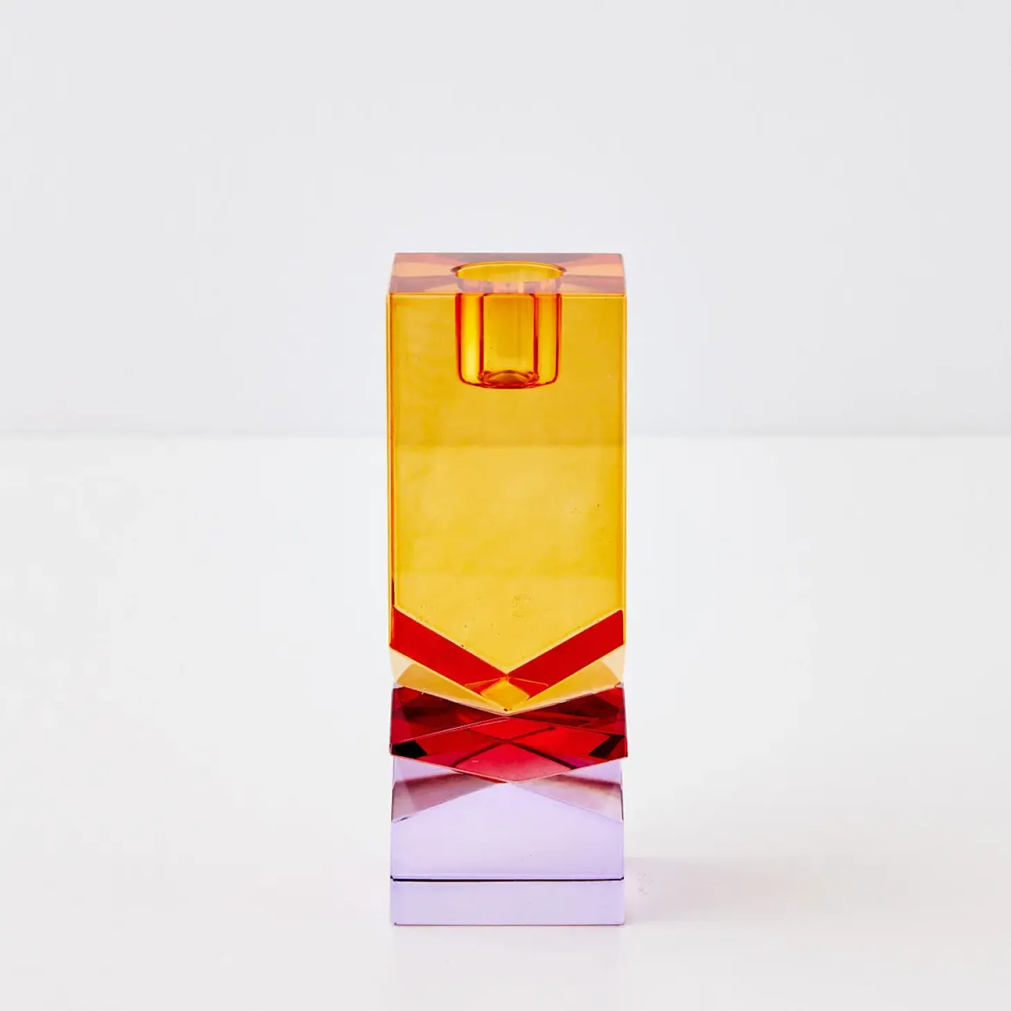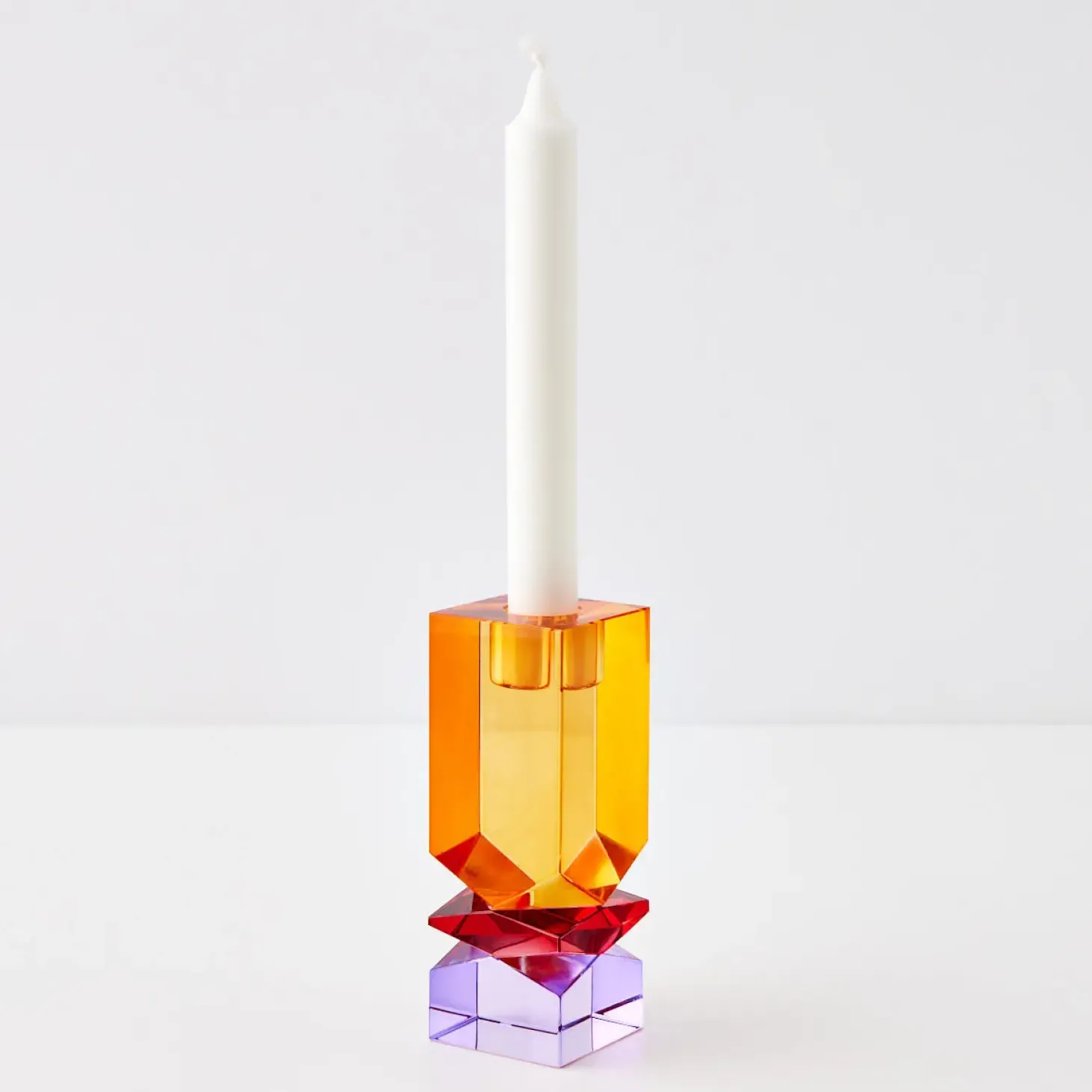Take A Step Towards Dopamine Décor With This Technicolour Crystal Taper Candle Holder In Shades Of Amber, Crimson And Lilac Designed To Make Your Interiors Sparkle With Joy.