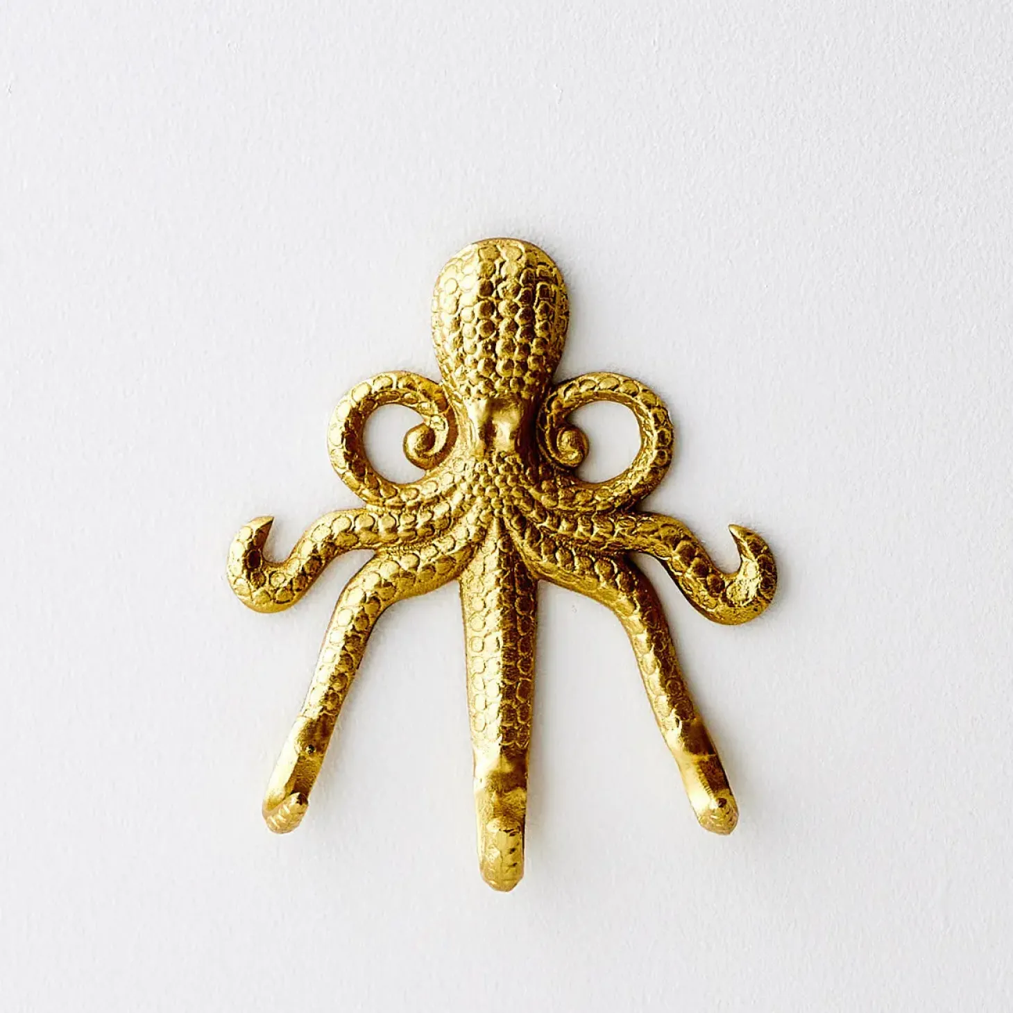 Keep Your Keys, Coats, Pet Leads And More Hooked And Ready With This Coastal-Inspired Wall Hook In Glistening Gold Resin With Three Hook-Shaped Tentacles.