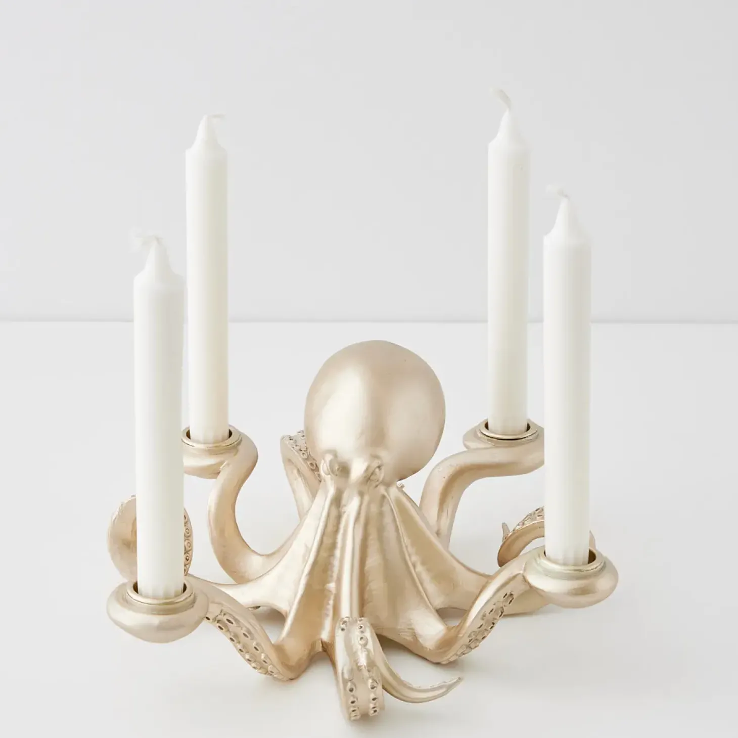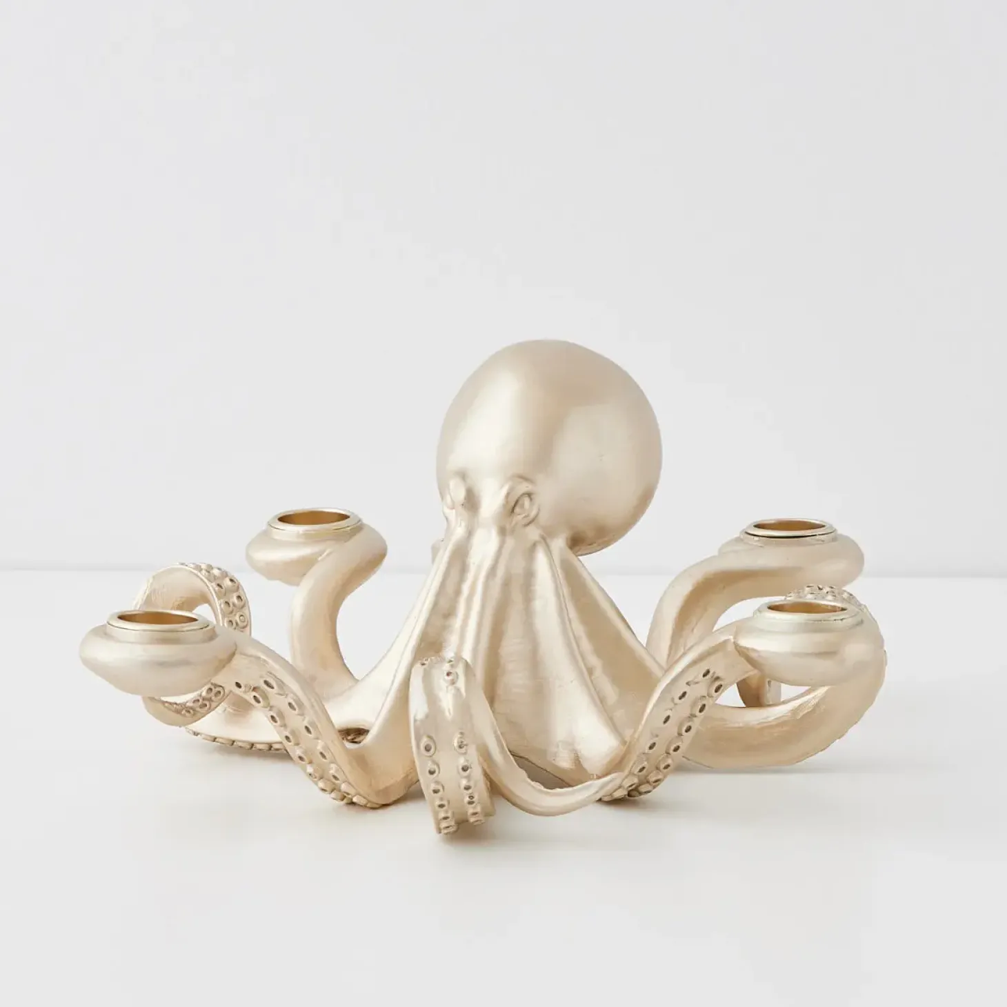 Curl Into Candlelight With Our Captivating Octopus Candle Holder! The Metallic Gold Resin Finish And Four Candle-Holding Tentacles Let You Customise Your Preferred Glow Intensity.