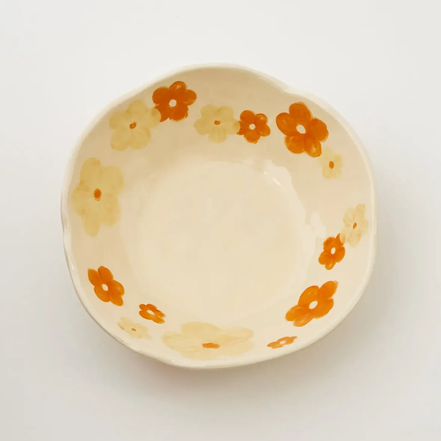 Straight Out Of Grandma’S Cupboard, This Vintage-Inspired Buttercup Yellow Glazed Ceramic Bowl Makes The Sweetest Trinket Dish Or Snack Bowl With Its Yellow And Orange Floral Hand-Painted Design.