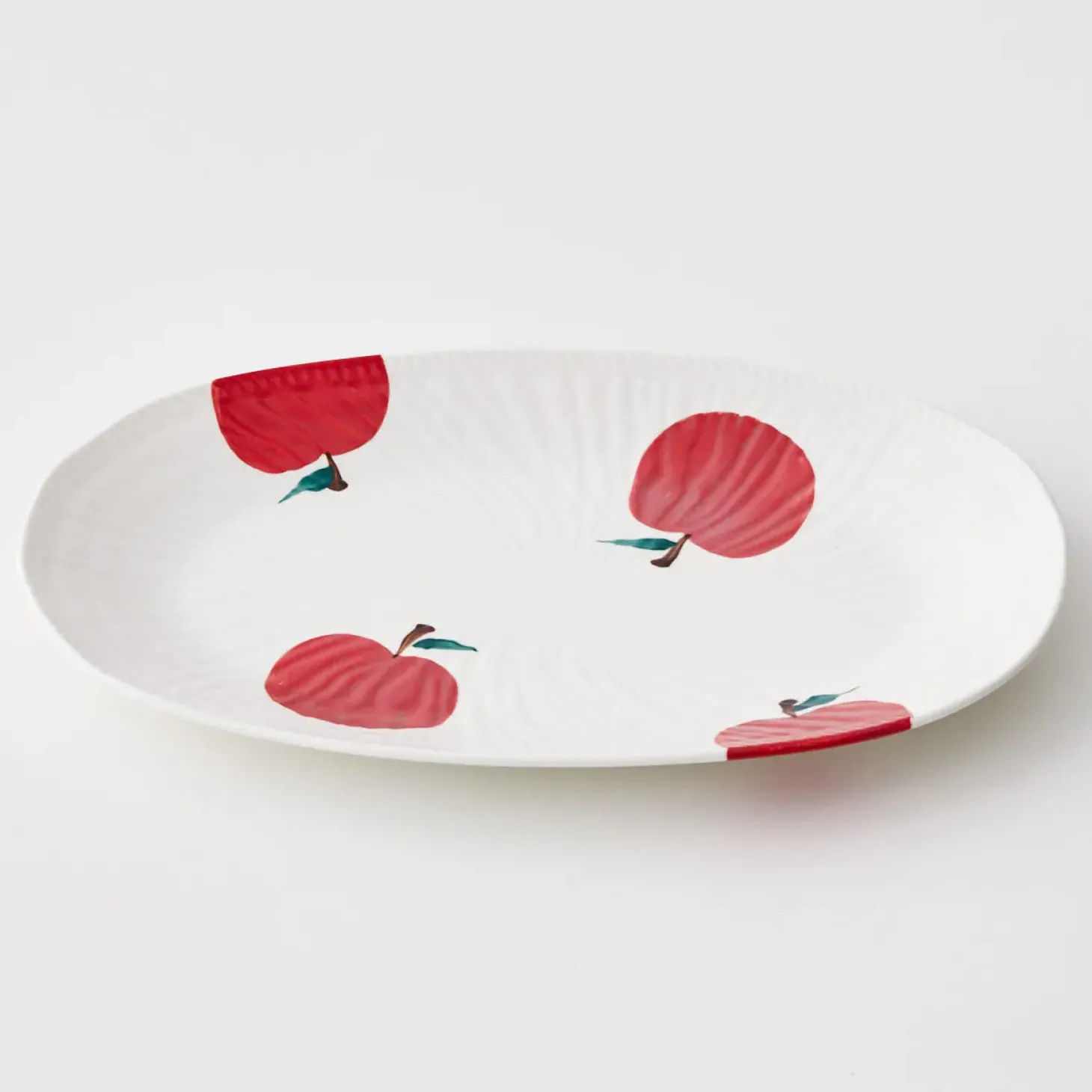 Keep Kitchenware Playful And Bright With This Apple Harvest Patterned Serving Platter In Tactile, Unglazed Ceramic Guaranteed To Make Your Next Brunch A Red Delicious Delight.