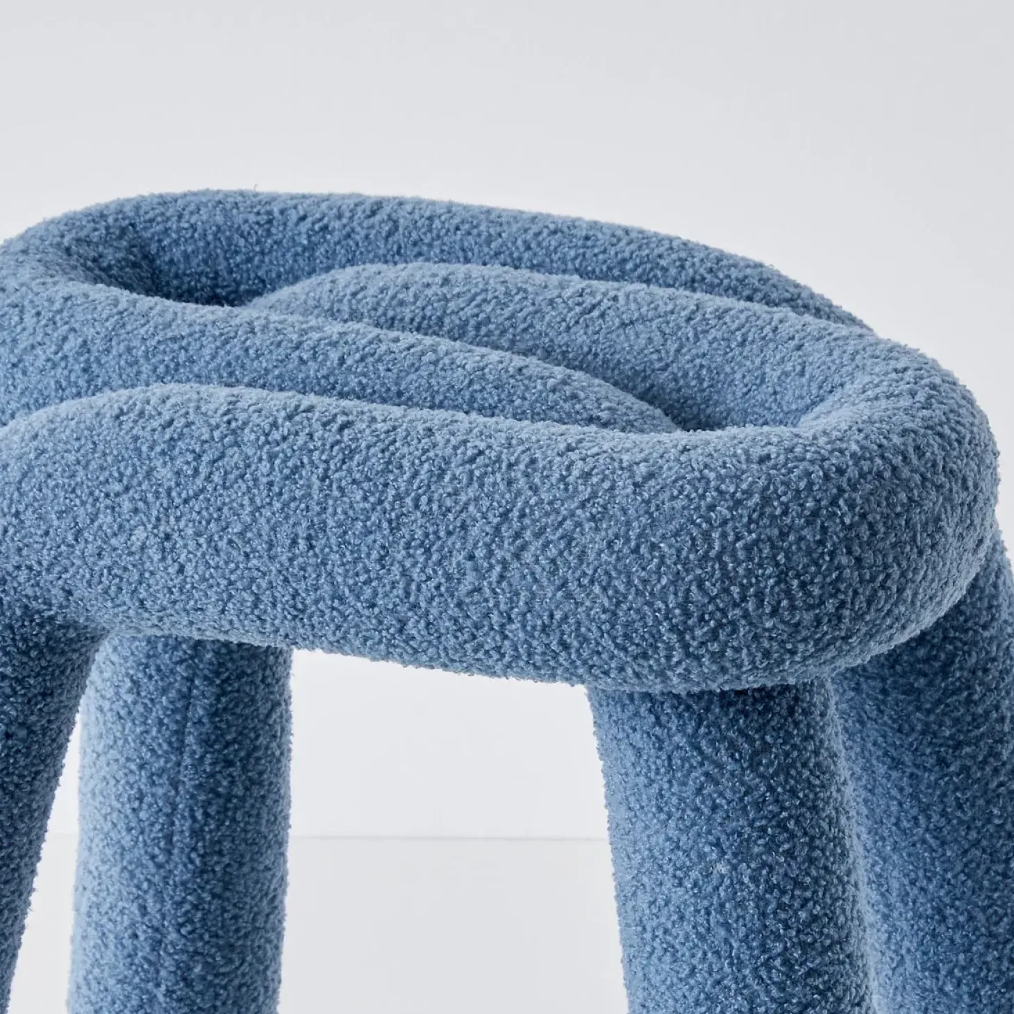 Furniture Or Art? Add Softness To Your Home With This On-Trend Blue Boucle Stool In A Striking, Interlocked Shape. The Streamlined Shape Easily Adds Extra Seating To Living Spaces.