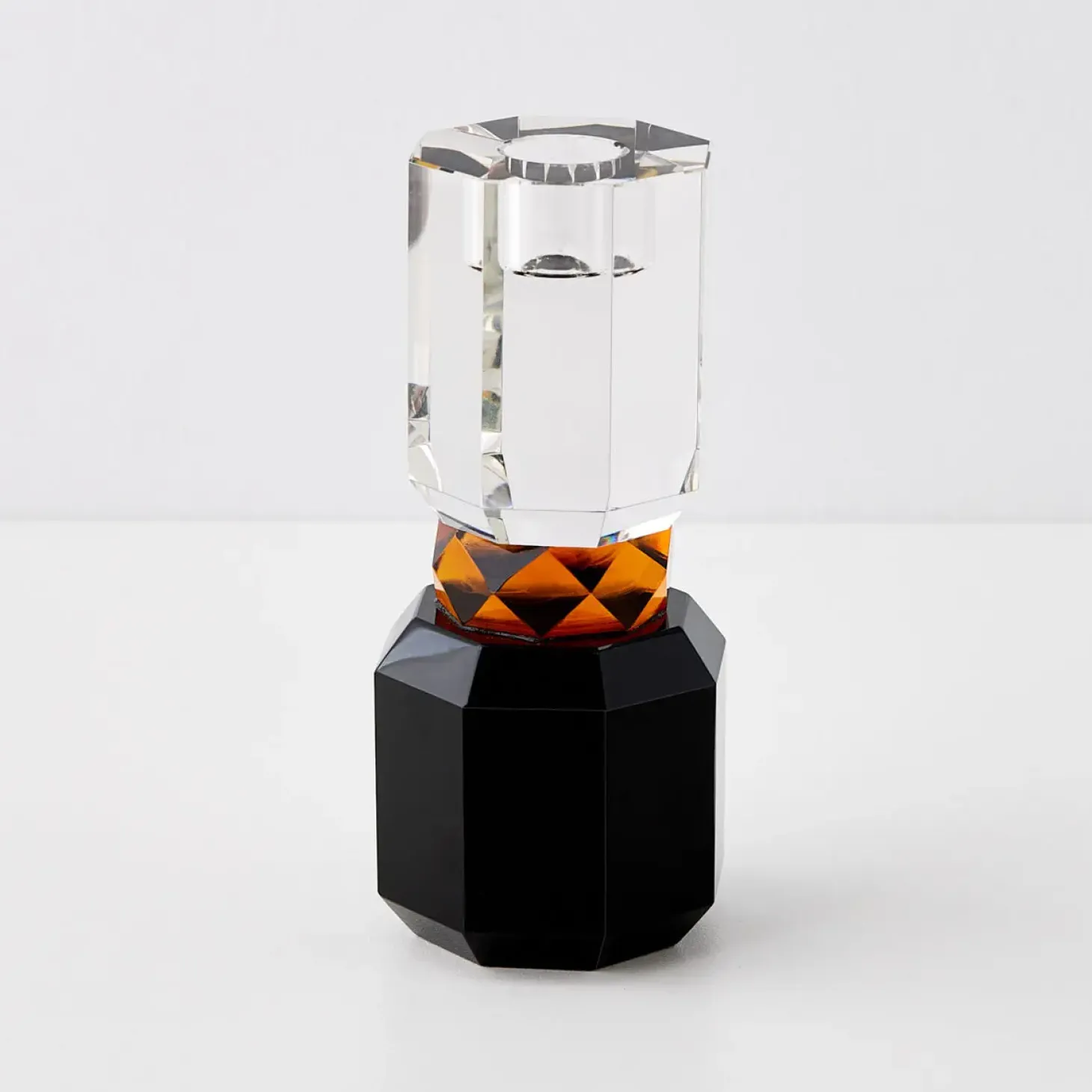 This Crystal Taper Candle Holder Is A Real Triple Threat From It’S Tri-Tone Black, Amber And Clear Crystal To It’S Classic Column Shape And Weighty Durability, It’Ll Make For A Titillating Table Setting.