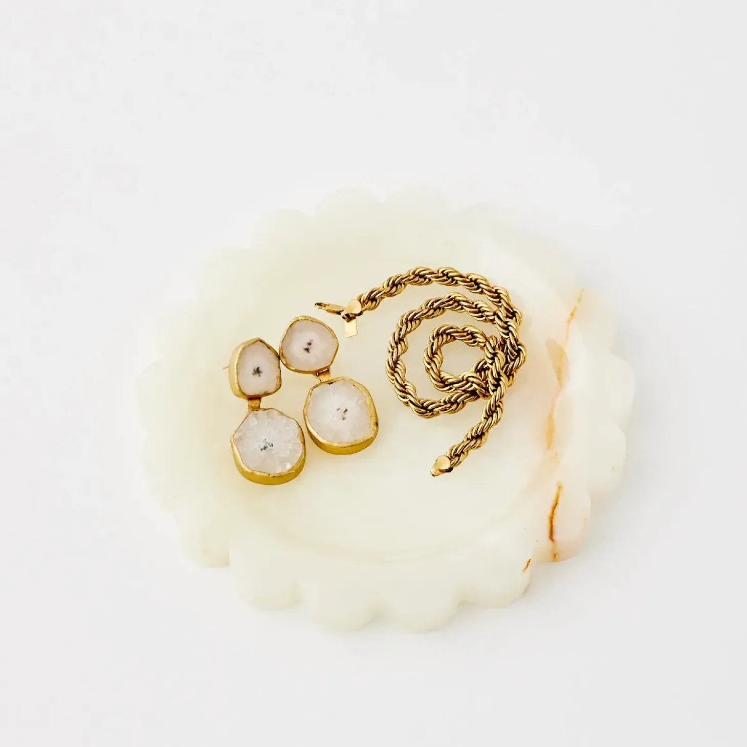Honed From A Single Piece Of Marble With Beige Veins, This Neutral Palette Styles Seamlessly With Minimalist Interiors Adding A Luxe Look With Soft Scalloped Edge For Displaying Jewellery.