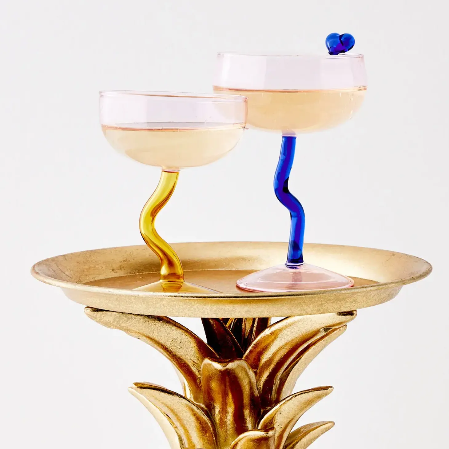 Whether Shaken, Stirred Or Muddled, This Coupe Adds Abstract Appeal To Your Drinks Trolley With Coloured Glass, Wavy Stem And Heart Detail For Mocktail Cocktail Hour.