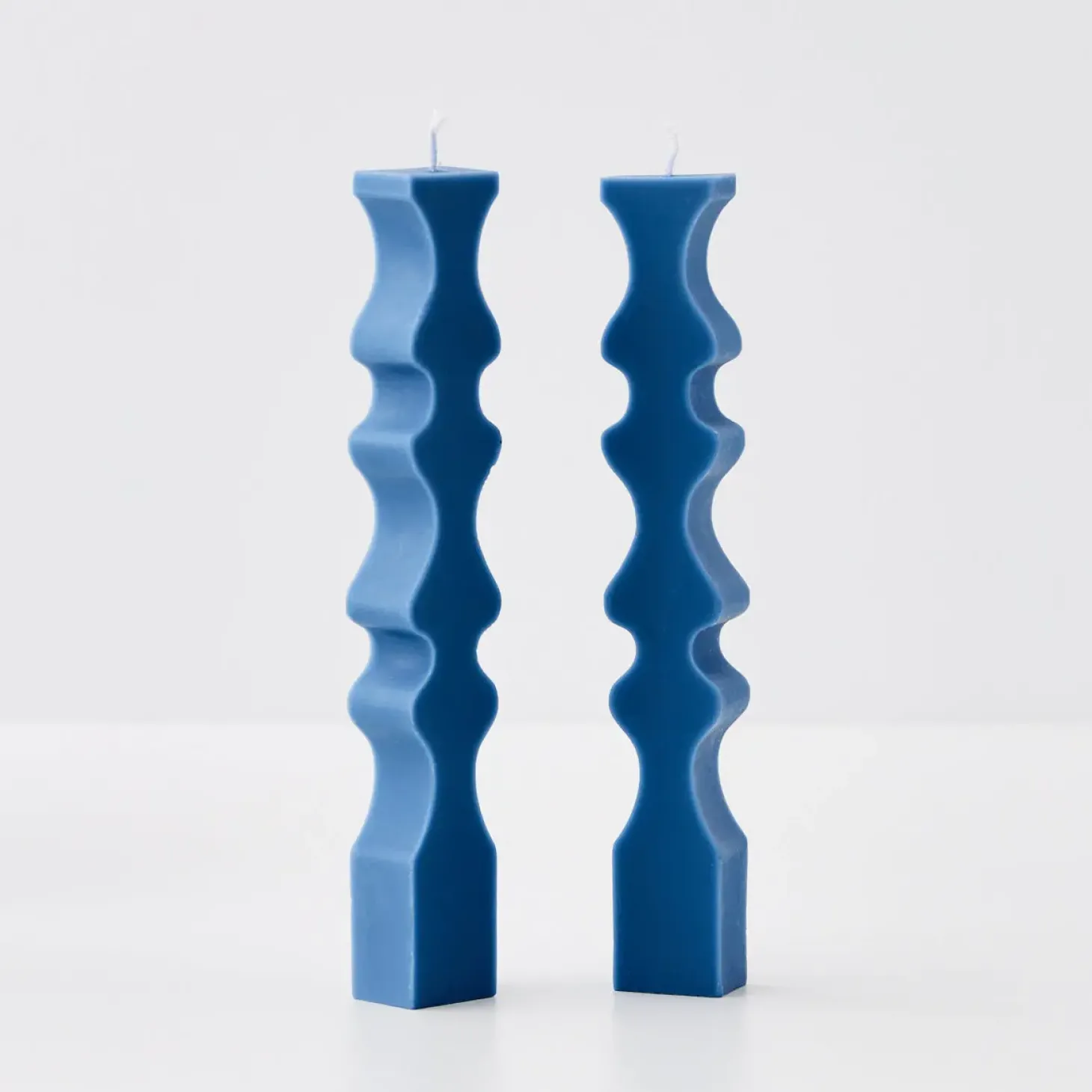 Embrace The Abstract With This Funky Shaped Dinner Candle Set Of 2 In Navy Coloured Wax. Style With Our Range Of Shaped Candles For A Dynamic Display.