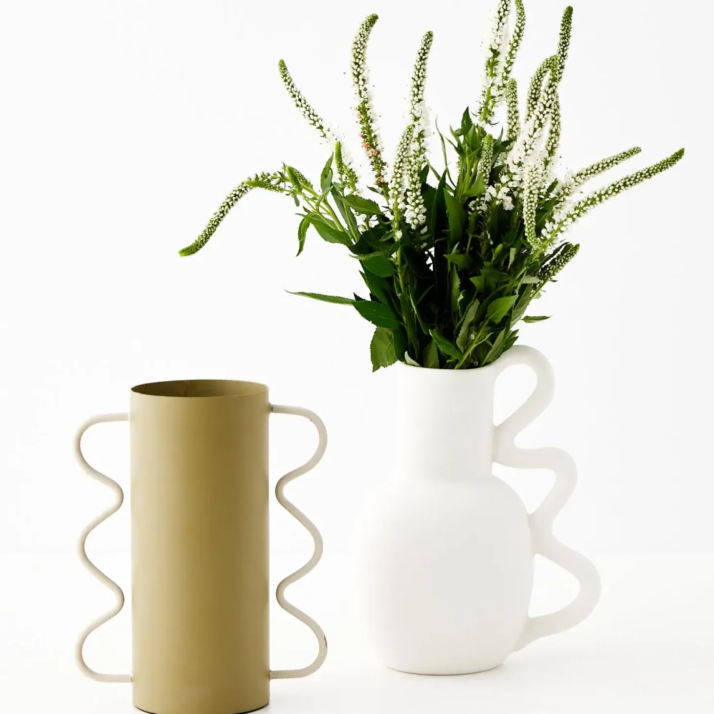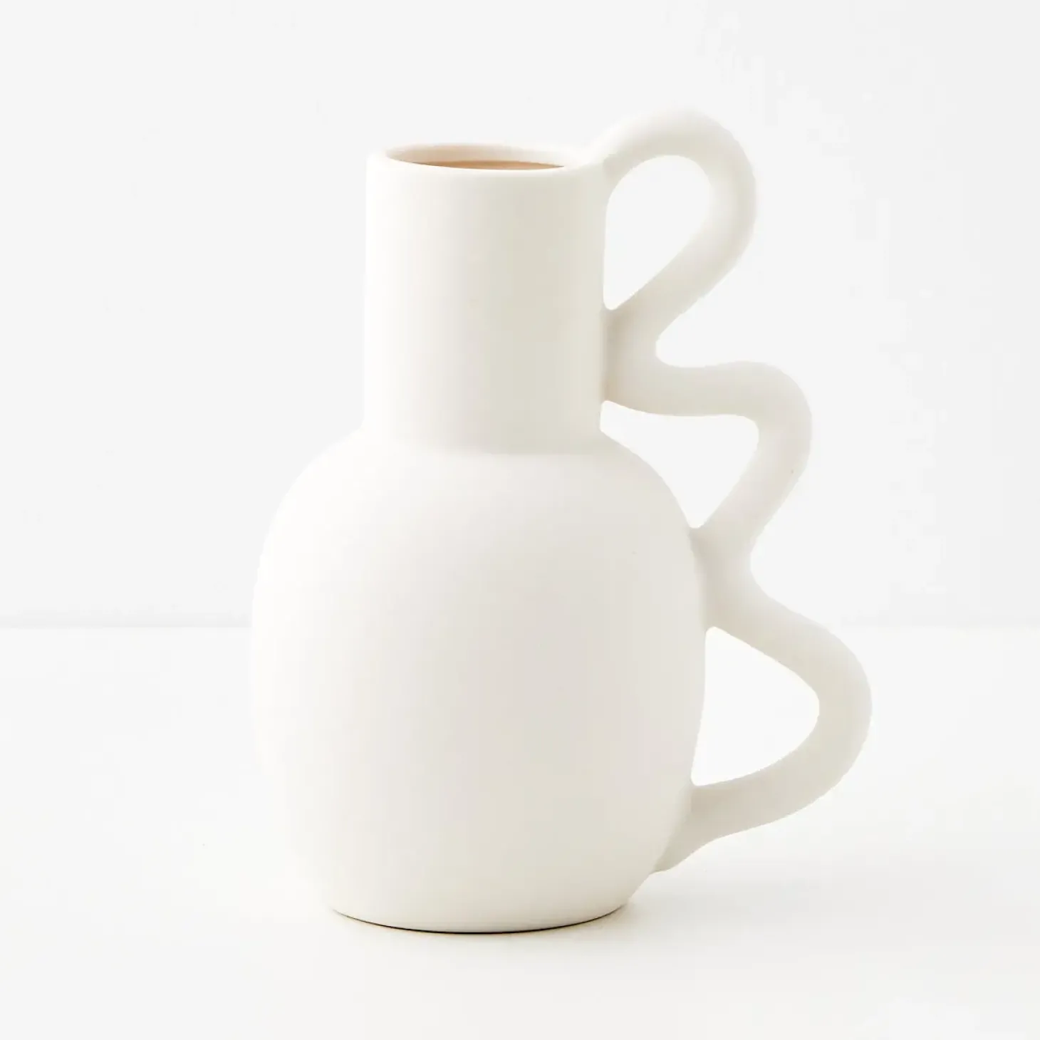 Decorate With Grecian-Inspired Ceramics Fit For The Goddess You Are. A Sculptural Piece Or Floral Vase In Chic White Ceramic With Quirky Squiggled Handle Takes It From Ancient To Modern Design.
