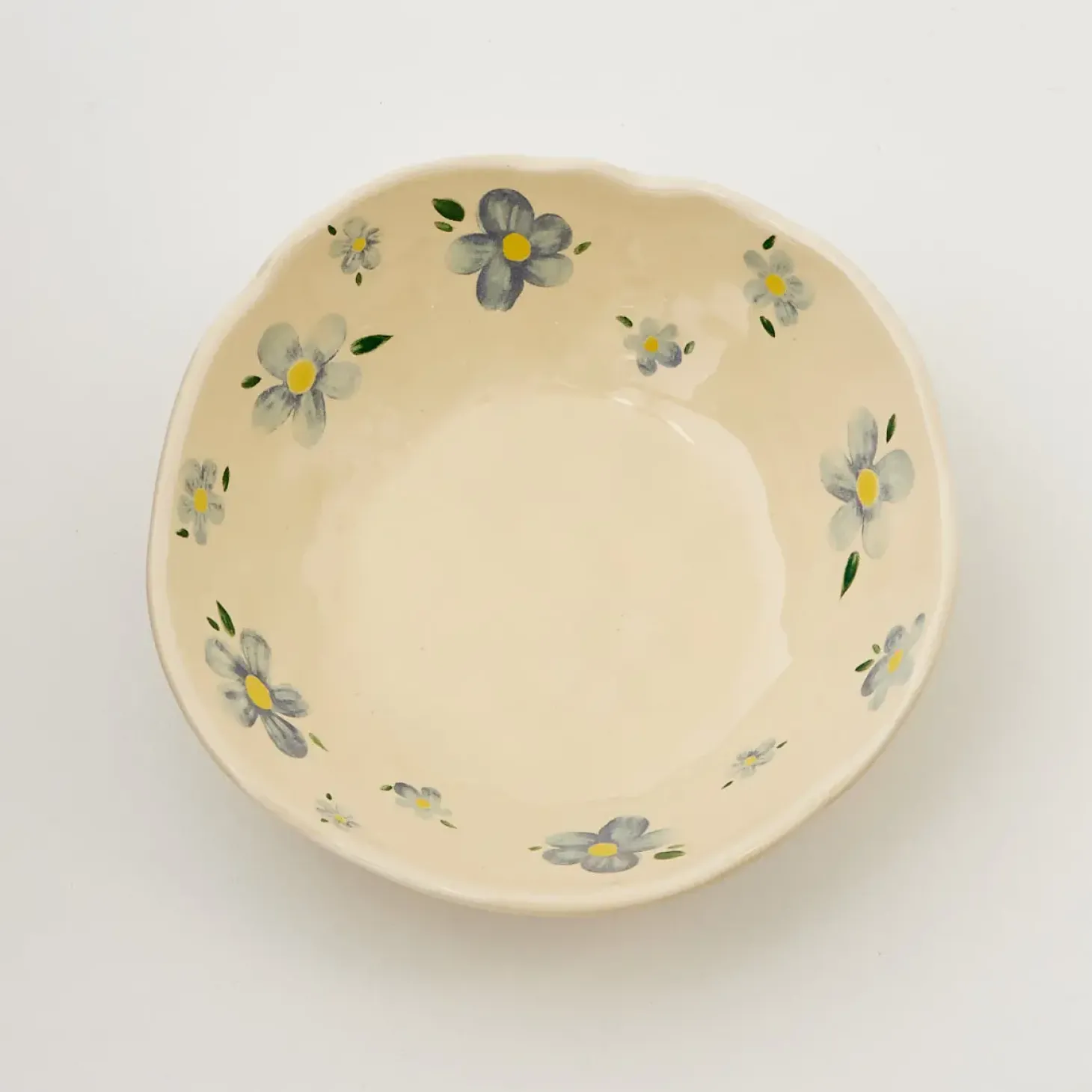 Straight Out Of Grandma’S Cupboard, This Vintage-Inspired Buttercup Yellow Glazed Ceramic Bowl Makes The Sweetest Trinket Dish Or Snack Bowl With Its Baby Blue Daisy Hand-Painted Design.