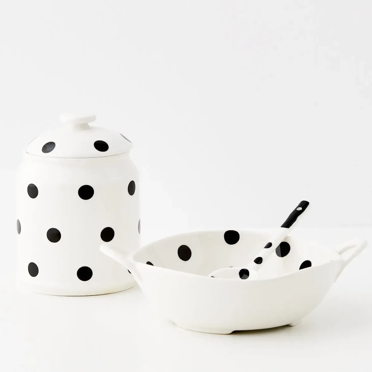 Black And White Polka Dots Add A Monochrome Take On Kitsch Kitchenware With This Ceramic Container That Makes The Sweetest Sugar Or Biscuit Container For Elevated Kitchen Storage.