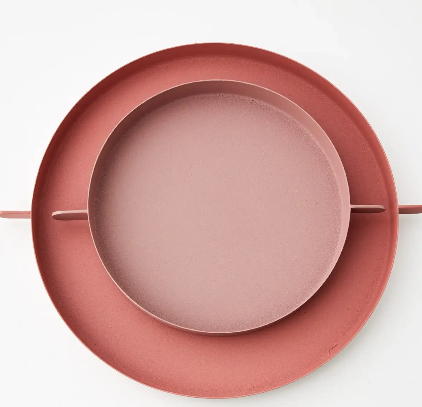 Add A Sweet Pop Of Colour To Your Serveware With This Set Of Two Metal Trays In Dusty Pink. A Simple Shape, With Dual-Handles For Easy Transportation, These Trays Will Suit Most Aesthetics.