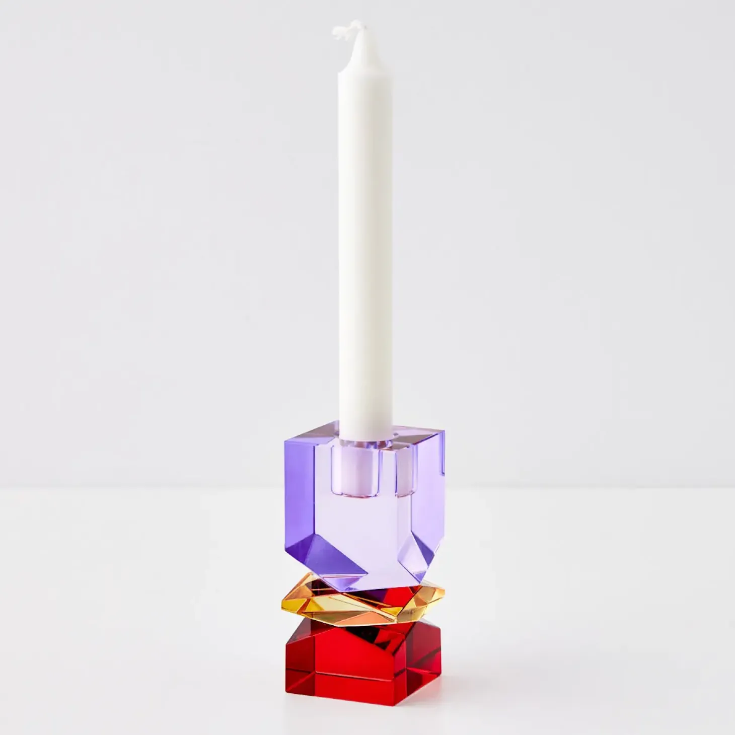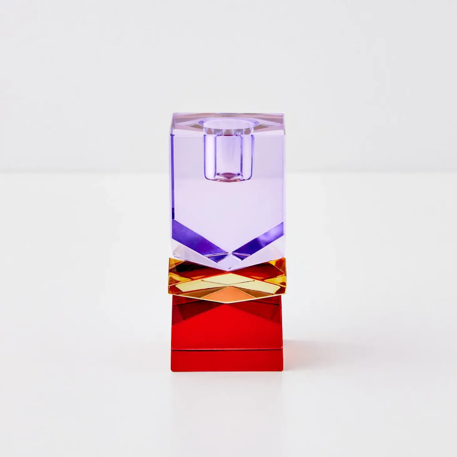 Take A Step Towards Dopamine Décor With This Technicolour Crystal Taper Candle Holder In Shades Of Crimson, Amber And Lilac Designed To Make Your Interiors Shine Bright.