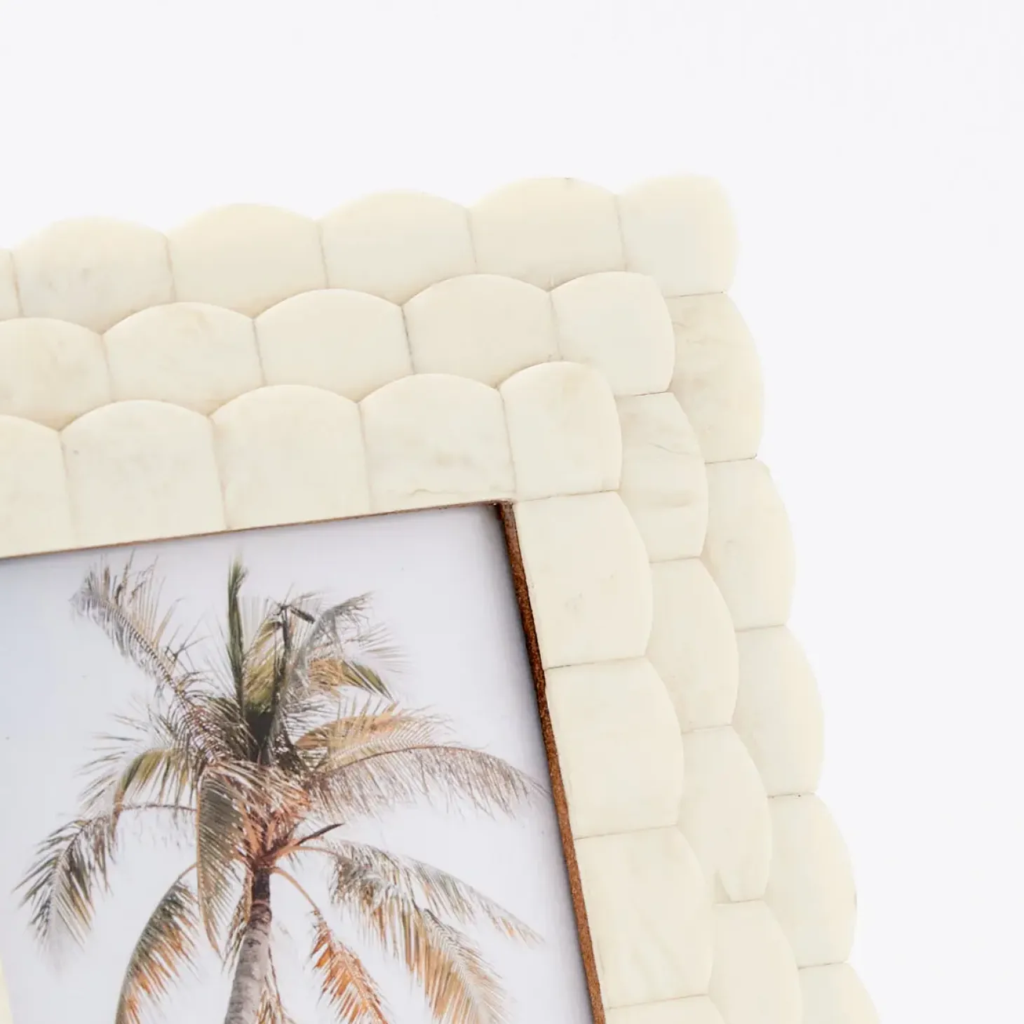 Keep Memories From Fading With This Stunningly Crafted Photo Frame In Delicate Ivory Bone Inlay In An Interlocking Scallop Design, Easily Styled With Neutral Or Colourful Interiors.