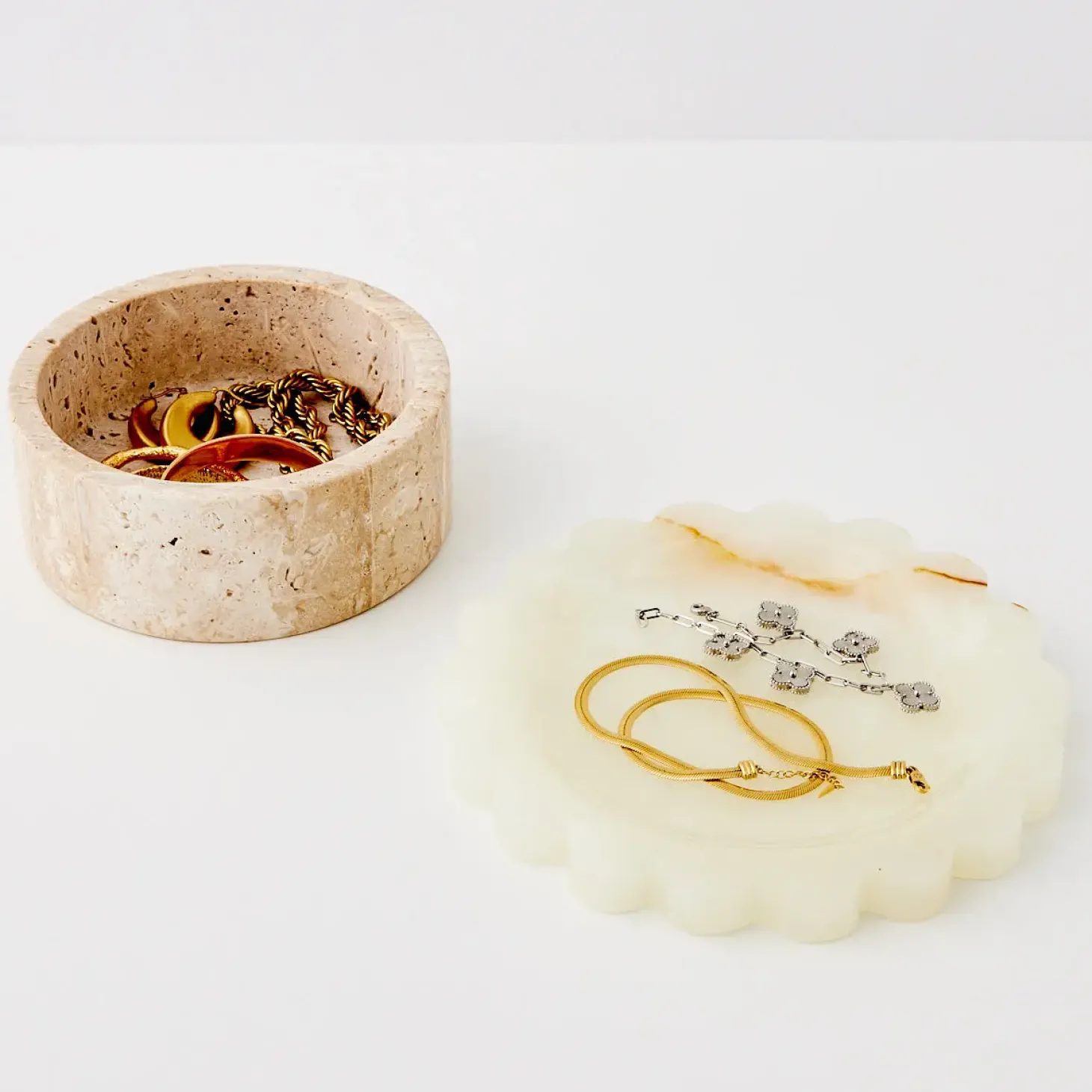 Honed From A Single Piece Of Marble With Beige Veins, This Neutral Palette Styles Seamlessly With Minimalist Interiors Adding A Luxe Look With Soft Scalloped Edge For Displaying Jewellery.