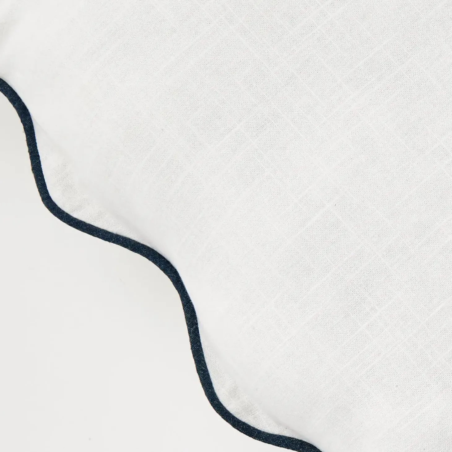 A Delicate Scalloped Edge Is An Easy Way To Add A Unique Twist To Classic Interior Pieces Like This White Cotton Accent Cushion With Scalloped, Navy Trim For A Hamptons Chic Aesthetic.
