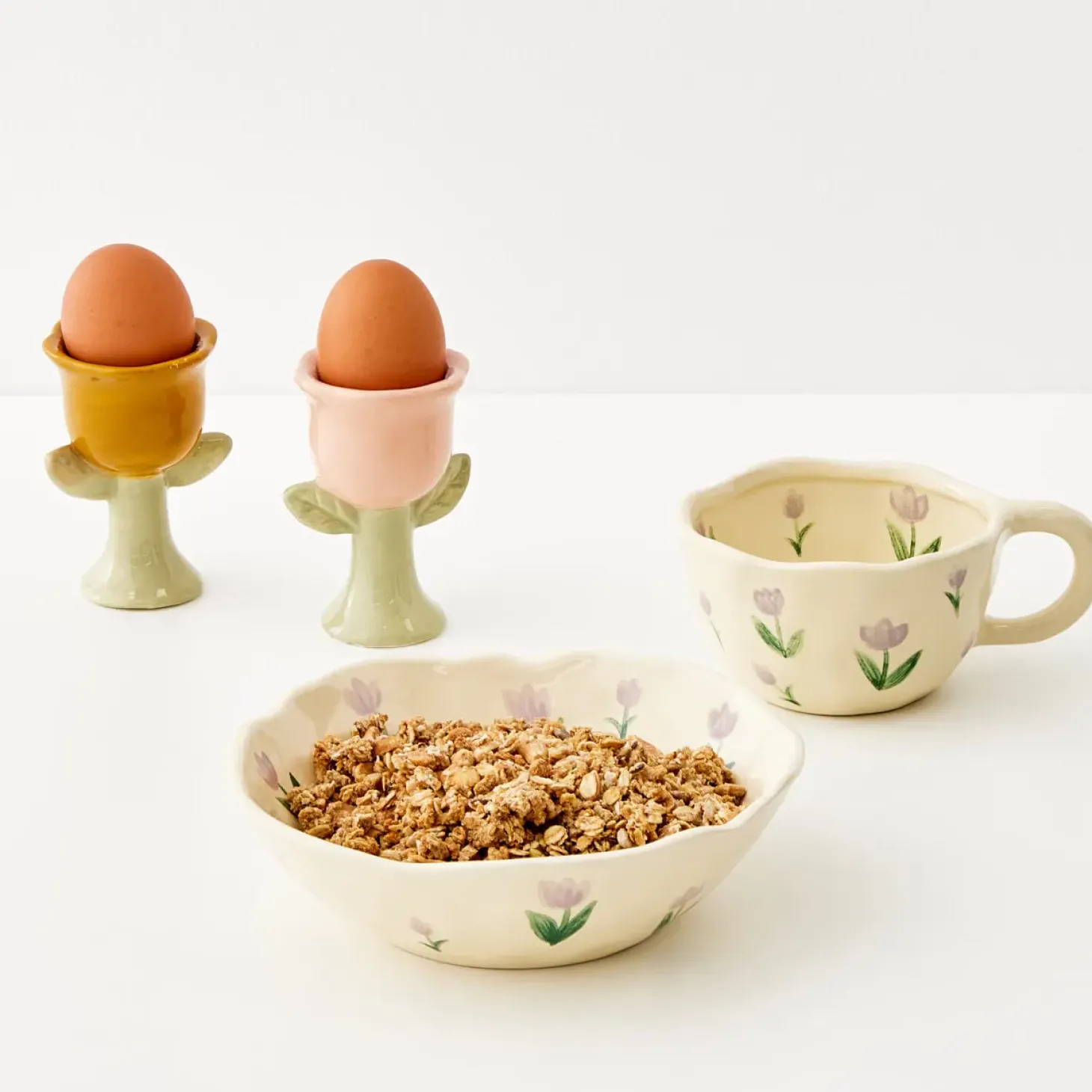 Straight Out Of Grandma’S Cupboard, This Vintage-Inspired Buttercup Yellow Glazed Ceramic Bowl Makes The Sweetest Trinket Dish Or Snack Bowl With Its Lilac Tulip Hand-Painted Design.
