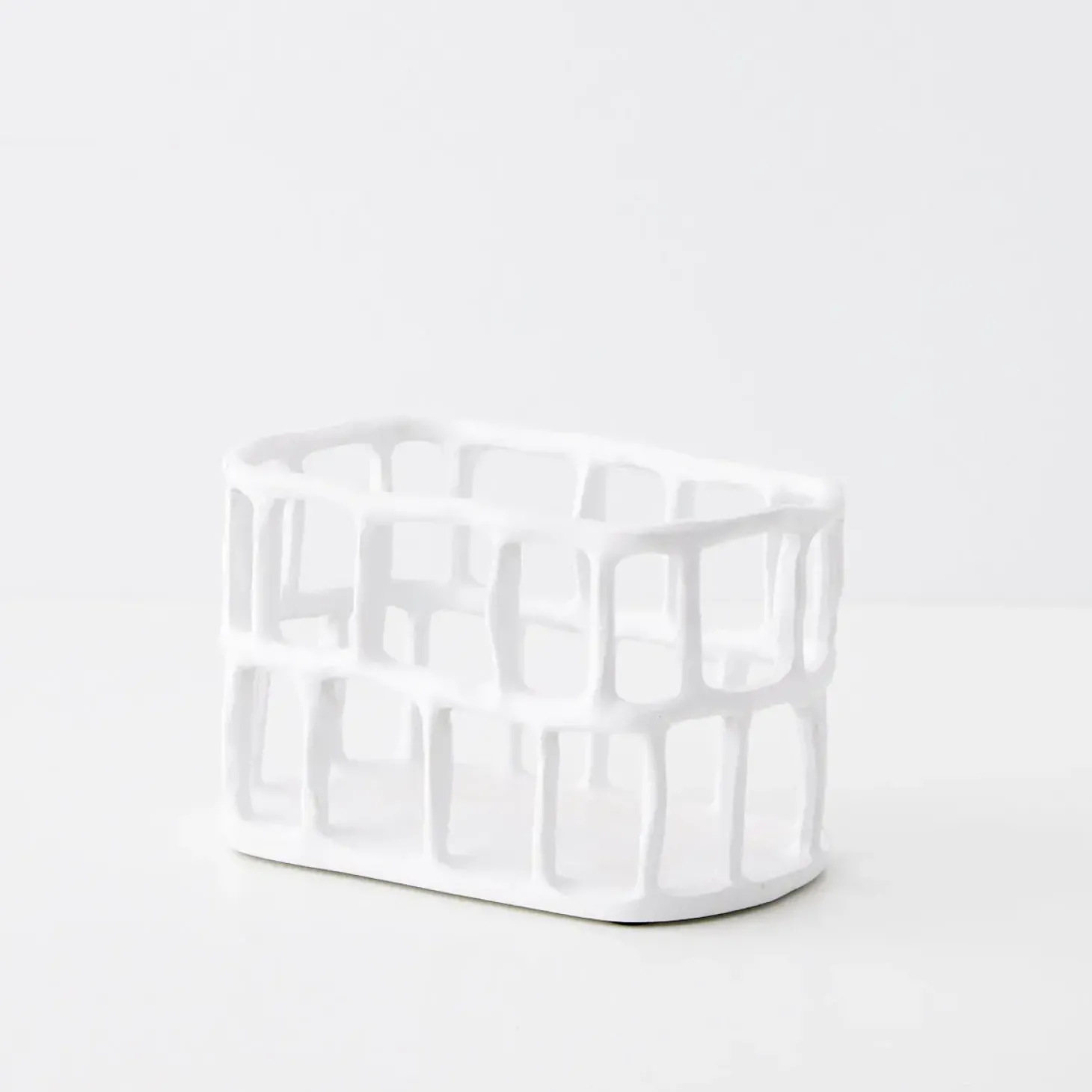 Rock The Resin Trend With This Woven-Shaped Basket In Calming, Cool White. Stack With Bright Citrus Or Use As A Tasty Bread Basket, This Piece Merges Rustic Charm With Modern Materials.